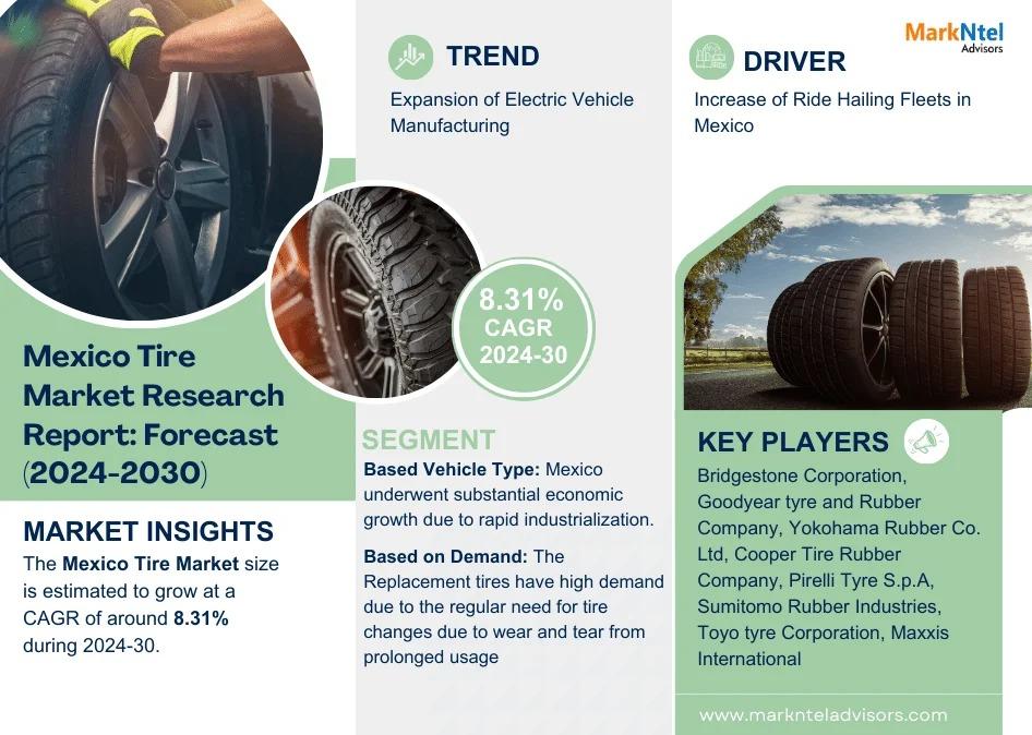 As per recent study by MarkNtel Advisors The Mexico Tire Market size is estimated to grow at a CAGR of around 8.31% during the forecast period, i.e., 2024-30.